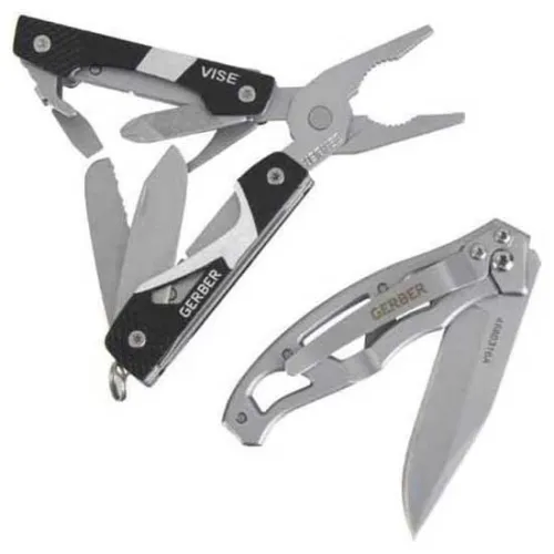 Il pacchetto regalo Vise Multitool e Mini Paraframe. Con la morsa Gerber ottieni una pinza compatta ma utile insieme ad altri 8 strumenti! Queste pinze tascabili racchiudono molteplici funzioni in un piccolo pacchetto che si adatta a un portachiavi. Abbinato a questo strumento essenziale è il versatile mini coltello a clip in acciaio ad alto tenore di carbonio Paraframe, con funzione di sicurezza del blocco del telaio. Potente e compatto con 25 anni di garanzia Gerber. Confezione regalo Vise Multitool e Mini Paraframe. Con la morsa Gerber ottieni una pinza compatta ma utile insieme ad altri 8 strumenti! Queste pinze tascabili racchiudono molteplici funzioni in un piccolo pacchetto che si adatta a un portachiavi. Abbinato a questo strumento essenziale è il versatile mini coltello a clip in acciaio ad alto tenore di carbonio Paraframe, con funzione di sicurezza del blocco del telaio. Potente e compatto con 25 anni di garanzia di Gerber.