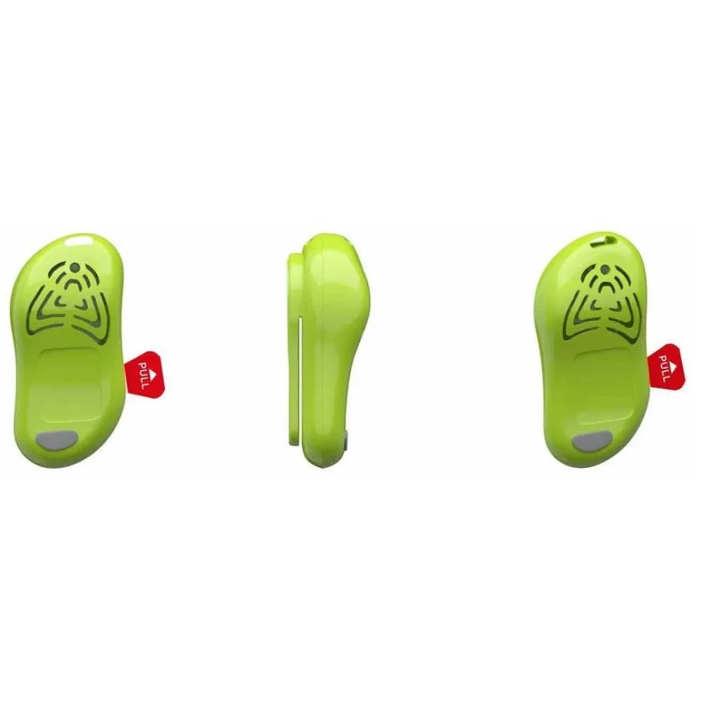 Rimuovere la scheda per attivare il dispositivo. Premere il pulsante per accendere o spegnere il dispositivo: 4 brevi lampeggi verdi indicano l'accensione, mentre un singolo lampeggio lungo rosso indica lo spegnimento. All'accensione, la luce lampeggerà una volta ogni 5 minuti circa. Dopo 8 ore di funzionamento continuo, il dispositivo si spegne automaticamente e deve essere riacceso prima di utilizzarlo nuovamente. Fissa saldamente il dispositivo ai tuoi vestiti con la sua clip facile da agganciare o con un cavo che lo attraversa. Non mettere il dispositivo in tasca o in borsa, in quanto ciò ostruirà le onde ultrasoniche emesse. A temperature normali, il dispositivo può tenere lontane le zecche per circa 3000 ore.