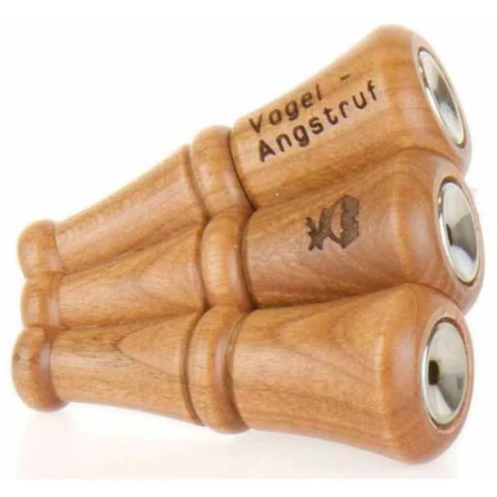 Triade richiamo di soccorso in legno di ciliegio tedesco. Adatto a tutti i predatori carnivori e altri predatori. Il richiamo misto di soccorso di un uccello canoro provoca l'invidia alimentare della volpe, della martora, del cane procione, ecc., con cordino, istruzioni.