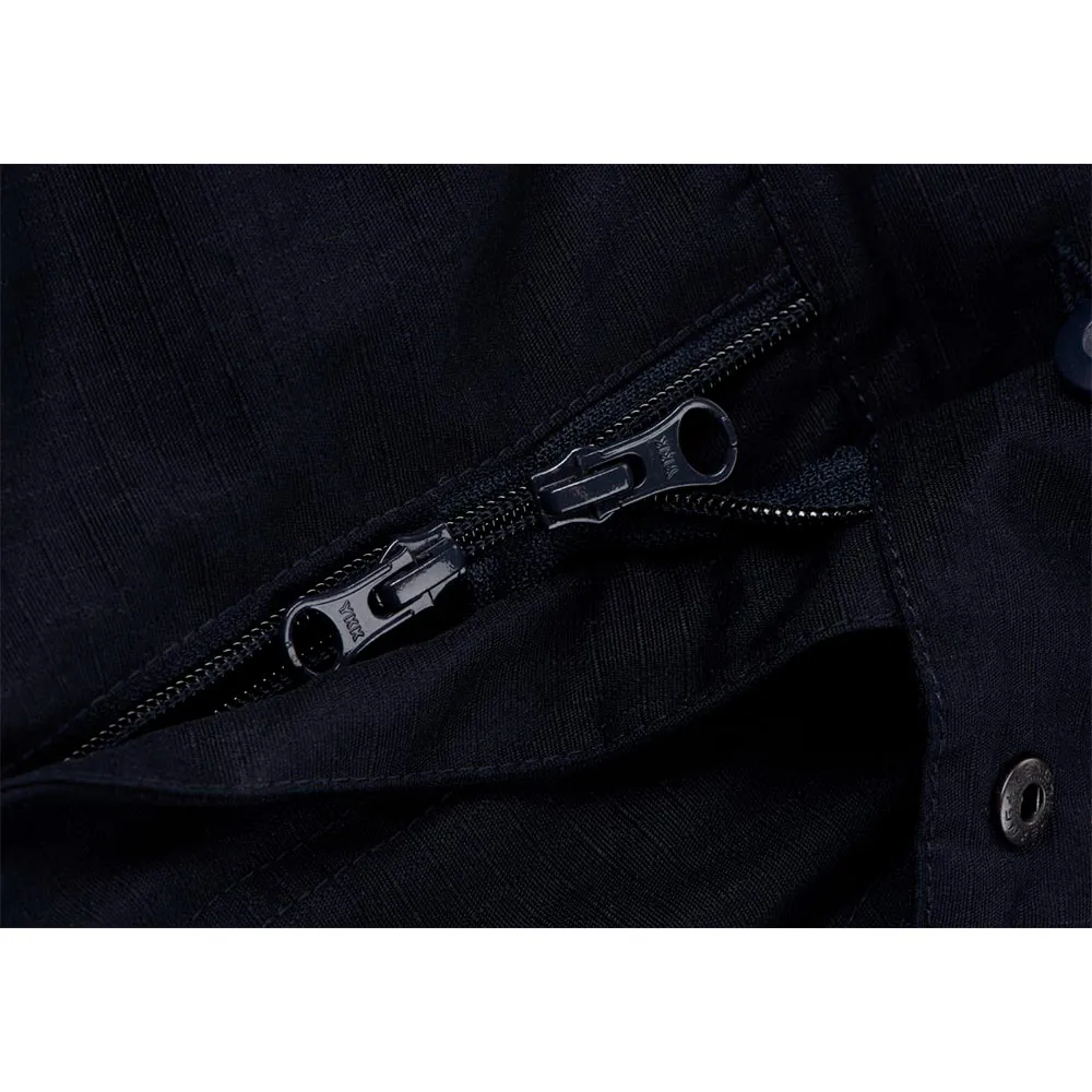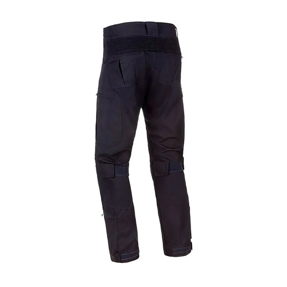 Aan de voorkant vinden we een hoogwaardige YKK rits met klittenbandsluiting. Een riem loopt rond de binnenste tailleband om de maat aan te passen. Dergelijke riemen bevinden zich rond de enkels om de pasvorm aan te passen aan de schoeisel van de gebruiker. Grote riemlusjes maken het gebruik van een breed scala aan tactische riemen mogelijk.