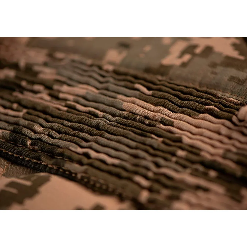 Stevige gevechtsbroek. Het materiaal is comfortabel en zacht en droogt relatief snel. De stof op de pijpen en inzetstukken voelt duurzaam en stevig aan. De naden voelen sterk en stevig aan.