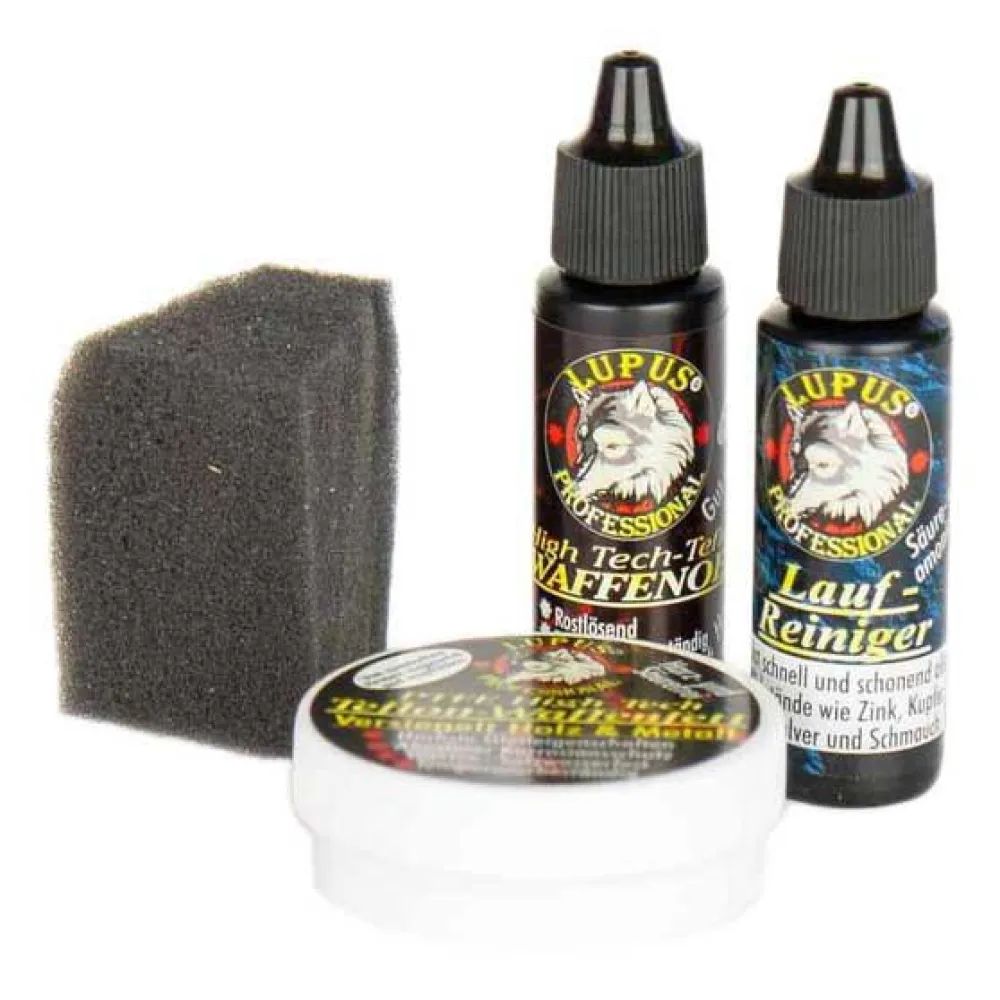Teflon-pistoolverzorging in een voordelige set voor beginners. Bescherm uw jacht- en sportwapens. Behandeling maakt het wapen, inclusief de kolf, bestand tegen vocht en handtranspiratie als het droog is. Bovendien geven de bolvormige Teflon-deeltjes u perfecte glij-eigenschappen voor alle mechanische componenten.