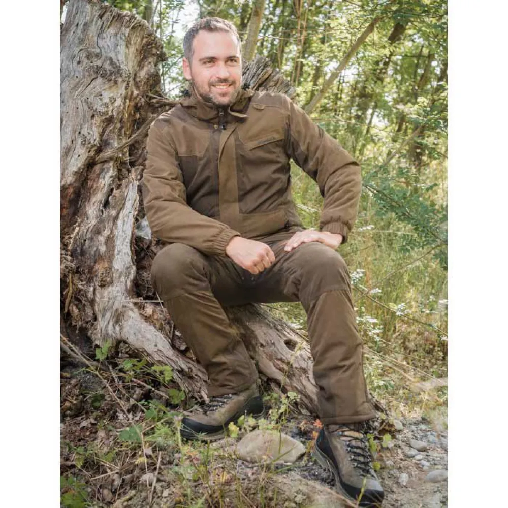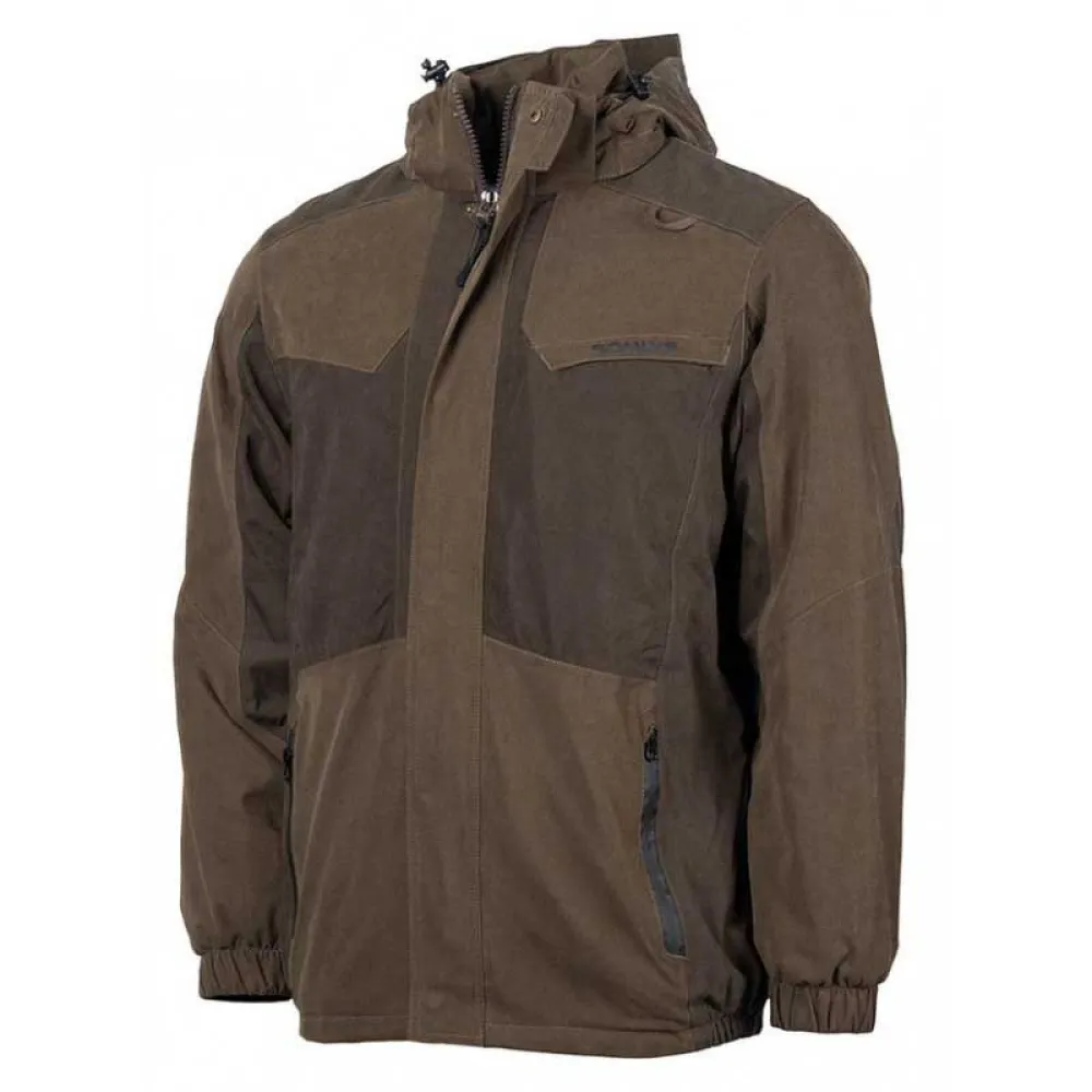Bekijk dan onze stijlvolle warme jkt jassen. De ene is tweekleurig groen/oranje en de andere tweekleurig groen. Beide jassen hebben dezelfde technische eigenschappen ze zijn waterdicht en ademend en hun naden zijn gelast. De voor deze jassen ontwikkelde vulling is zeer dicht en zeer licht. Op de voorkant heb je twee ritsvakken en een ritsvak op de borst. Kap in de vorm van een pet, afneembare stormflap met rits. Op de rug zit een ritsvakken, en aan de binnenkant zit een vak voor je vergunning en mobiele telefoon. Kan gedragen worden met de thermo-hunt broek
