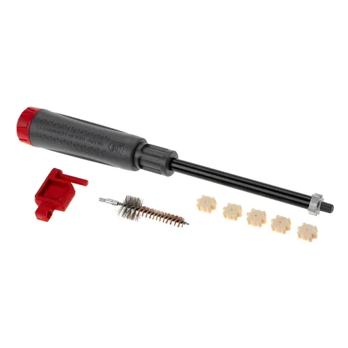 Inkluderte komponenter: Ergonomisk håndtak/oppbevaringskoffert, multifunksjonell sluttstykkebakstykkeskrape, stjernekammerskrape, .223/5.56 kammerbørste, kammermopp, gjenget stang