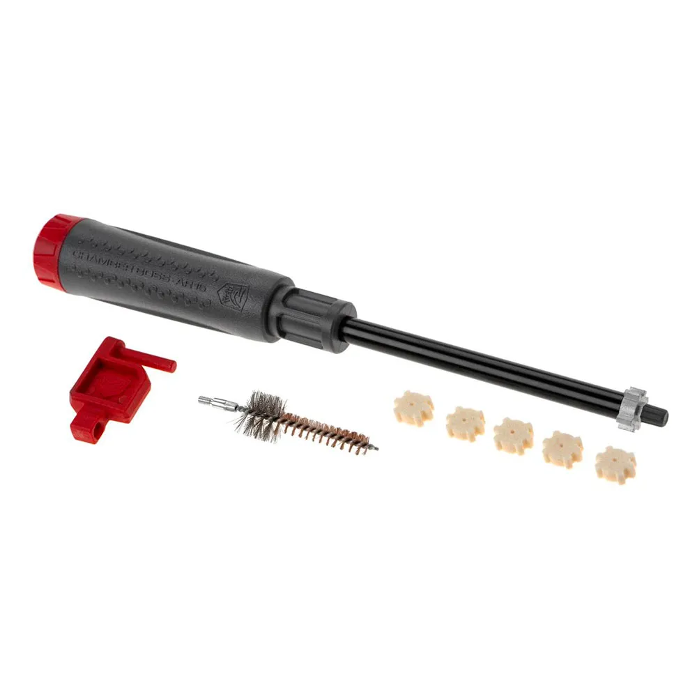 Chamber Brush: En slitesterk, kaliberspesifikk børste som festes til den integrerte stangen, slik at du kraftig kan skrubbe kammerveggene fri for rester.