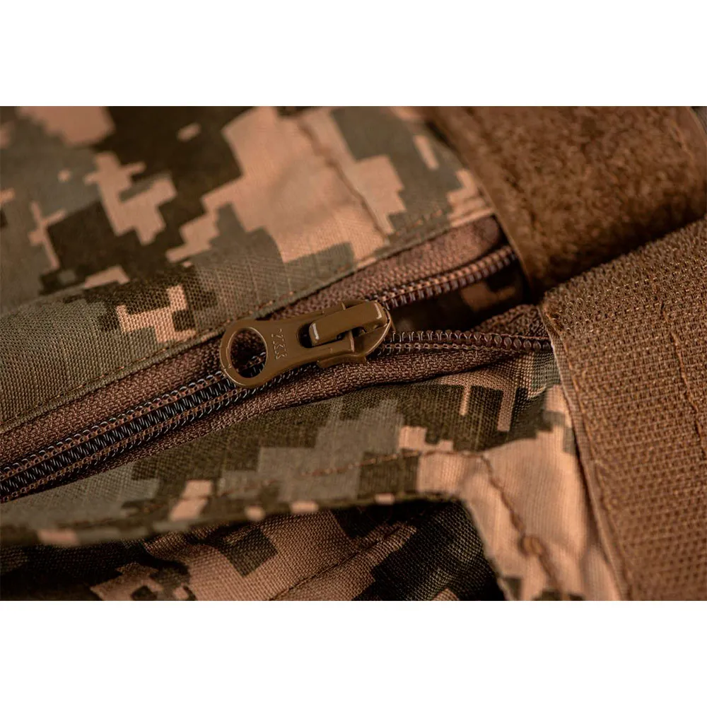- O usuário tem uma série de bolsos à sua disposição: 2 abertos na cintura, 2 grandes de carga em cada lado da coxa traseira com fechos de velcro e 2 médios na frente, 2 pequenos bolsos na área da perna inferior e mais 2 bolsos na parte de trás das calças.