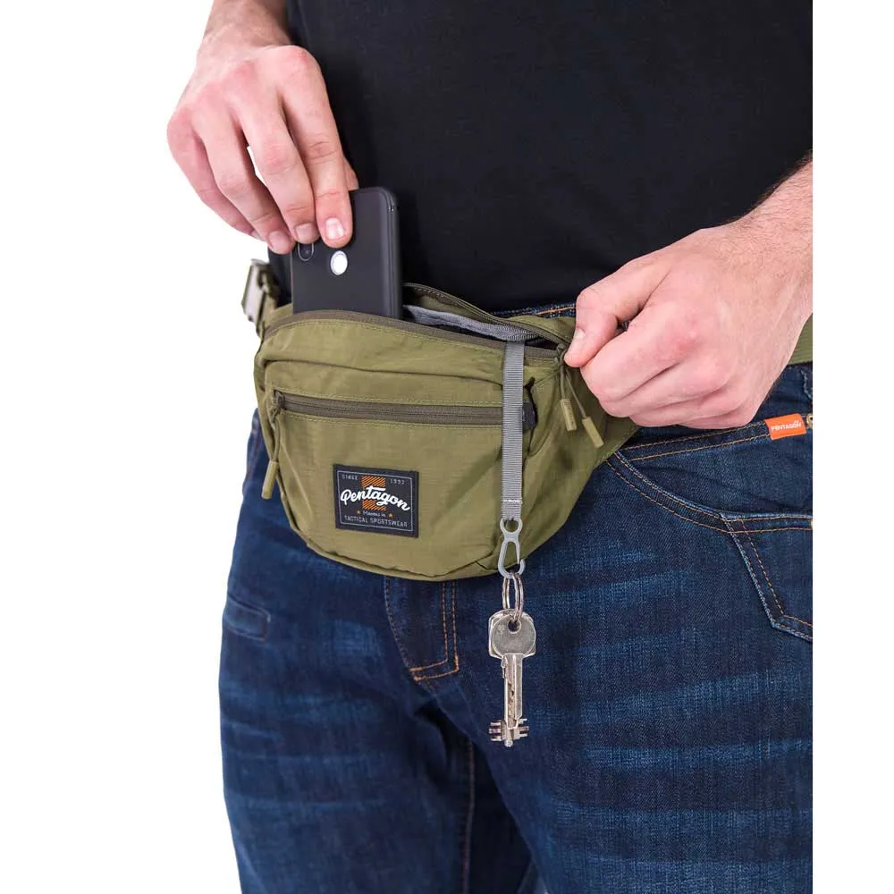 Desfrute da máxima conveniência mãos-livres com a PENTAGON Minor Waist Bag. Esta pochete compacta e discreta é a sua companheira perfeita para deslocamentos urbanos e aventuras ao ar livre. Os seus compartimentos inteligentes mantêm o seu telefone, carteira e chaves organizados e de fácil acesso. Construída com tecido Ripstop 640D resistente e equipada com fechos YKK® de classe mundial e fivelas Woojin®, é projetada para durar. A alça ajustável permite um ajuste confortável na cintura ou como uma moderna bolsa a tiracolo. É a fusão ideal de estilo minimalista e funcionalidade durável para o dia a dia