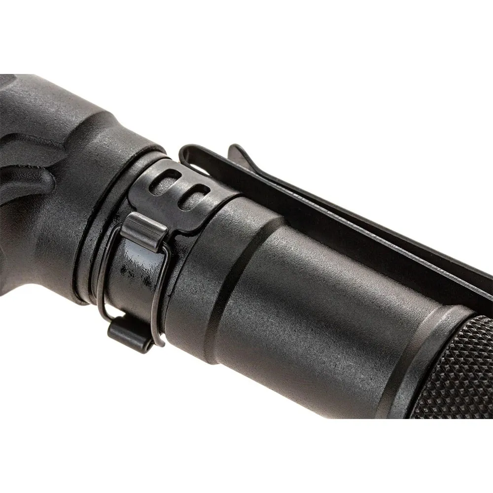 A ProTac 90-X foi projetada para um manuseio confortável e seguro. Seu tamanho compacto e design anti-rolamento facilitam a aderência e a operação, mesmo com luvas. O clipe de bolso removível incluído permite o transporte diário conveniente, mantendo a lanterna prontamente acessível. Pesando apenas 156 gramas com a bateria incluída, a ProTac 90-X é leve e não o sobrecarrega, tornando-a perfeita para uso prolongado. Além de seu desempenho e durabilidade impressionantes, a ProTac 90-X oferece uma gama de recursos adicionais que aprimoram sua usabilidade. O indicador de bateria integrado exibe a vida útil restante da bateria, permitindo que você monitore os níveis de energia e evite desligamentos inesperados. O cordão incluído oferece uma camada extra de segurança, evitando quedas acidentais e perdas. O refletor parabólico de prato fundo cria um feixe suave e focado com iluminação periférica ideal, aumentando a visibilidade em qualquer situação.