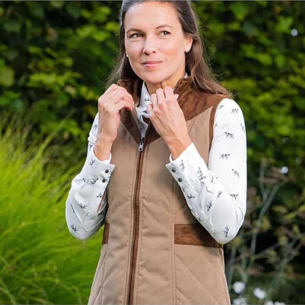 Denna väst har en vacker kamelfärg, som utstrålar en känsla av elegans och sofistikering. Den är tillverkad av högkvalitativa material och erbjuder hållbarhet, vilket garanterar långvarig användning. Tyget är mjukt och bekvämt, vilket garanterar en behaglig användning.