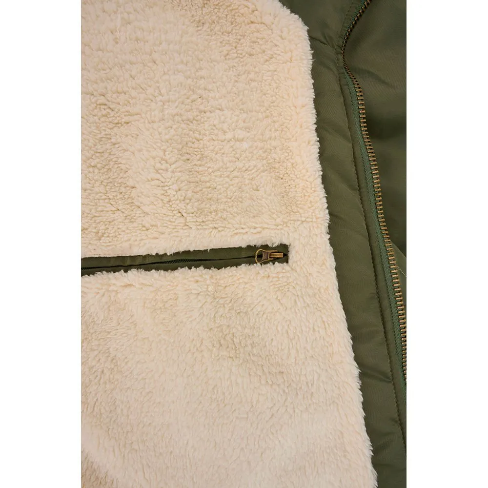 Material: Skal: 100% nylon, foder konstgjord päls: 100% polyester, ärmfoder: 100% polyester, ribb: 69% akryl 31% polyester.