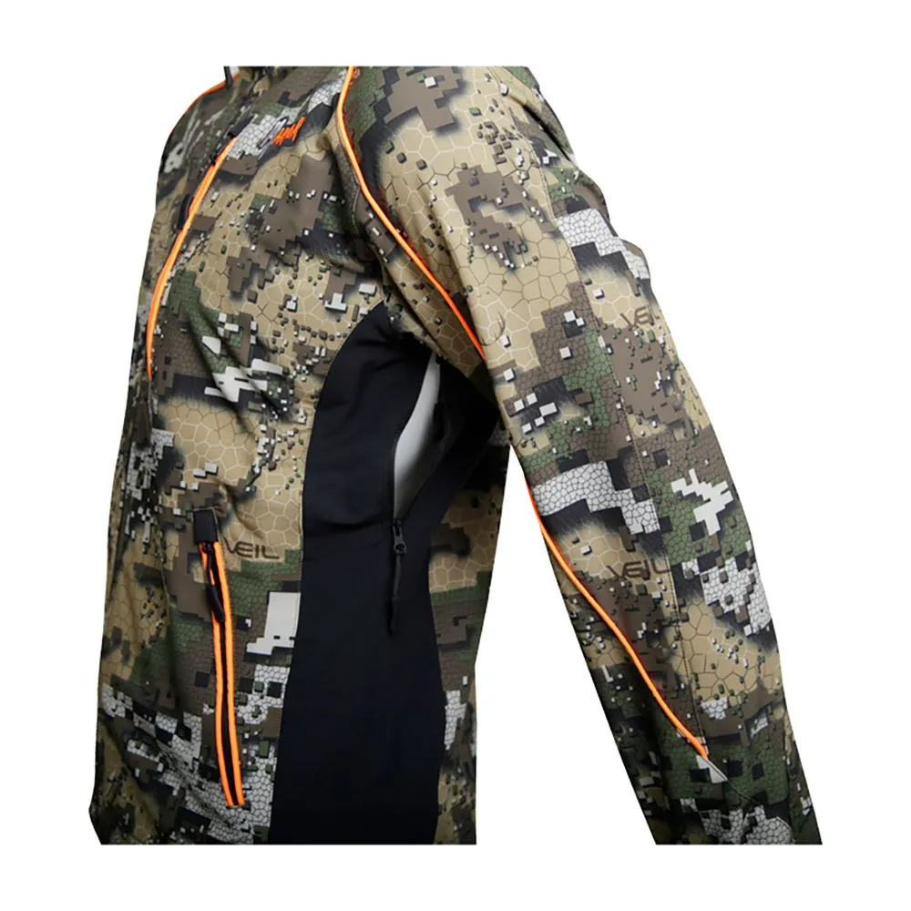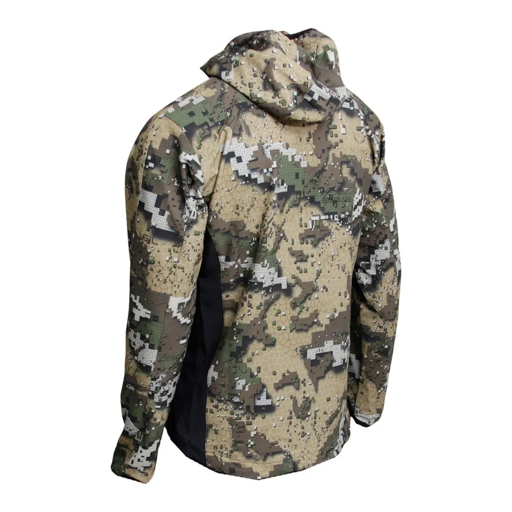 Designad för den dynamiska jägaren, har Fox Jacket en atletisk, ergonomisk skärning som erbjuder en perfekt passform till kroppen. Denna strömlinjeformade silhuett eliminerar bulk och förhindrar att den fastnar i grenar, vilket möjliggör tyst, flytande rörelse genom vildmarken. Det innovativa Camo Veil-mönstret är noggrant utformat för att bryta upp den mänskliga formen och ger enastående kamouflage över en mängd olika landskap och årstider. Funktionalitet är integrerad i varje detalj. Den integrerade huvan är anatomiskt formad för att ge full täckning och skydd utan att hindra ditt perifera seende, en kritisk funktion när du skannar din omgivning. För ökad komfort och skydd är ärmarna avslutade med integrerade tumhål, som håller ärmarna säkert på plats, stänger ute kalla drag och ger en sömlös övergång med dina handskar. Tekniska Specifikationer: