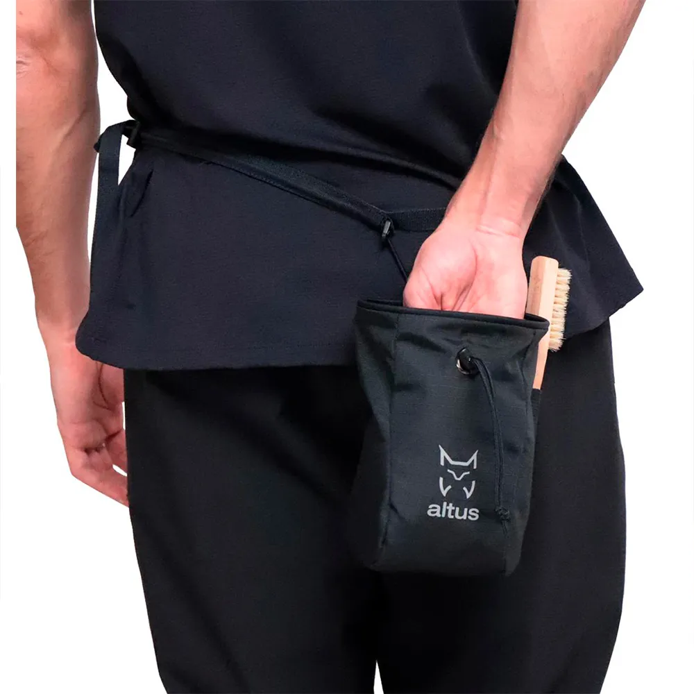 Taske designet til at hænge fra taljen for at bære magnesiumpulver under sport, klassisk eller kunstig klatring.