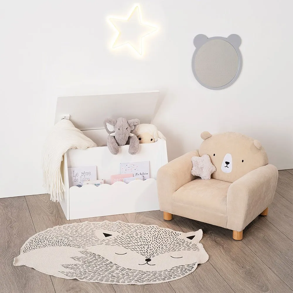 Praktisk, denne legetøjskasse har også et bogreolområde, der giver dig mulighed for at holde dit barns yndlingsbøger inden for rækkevidde.