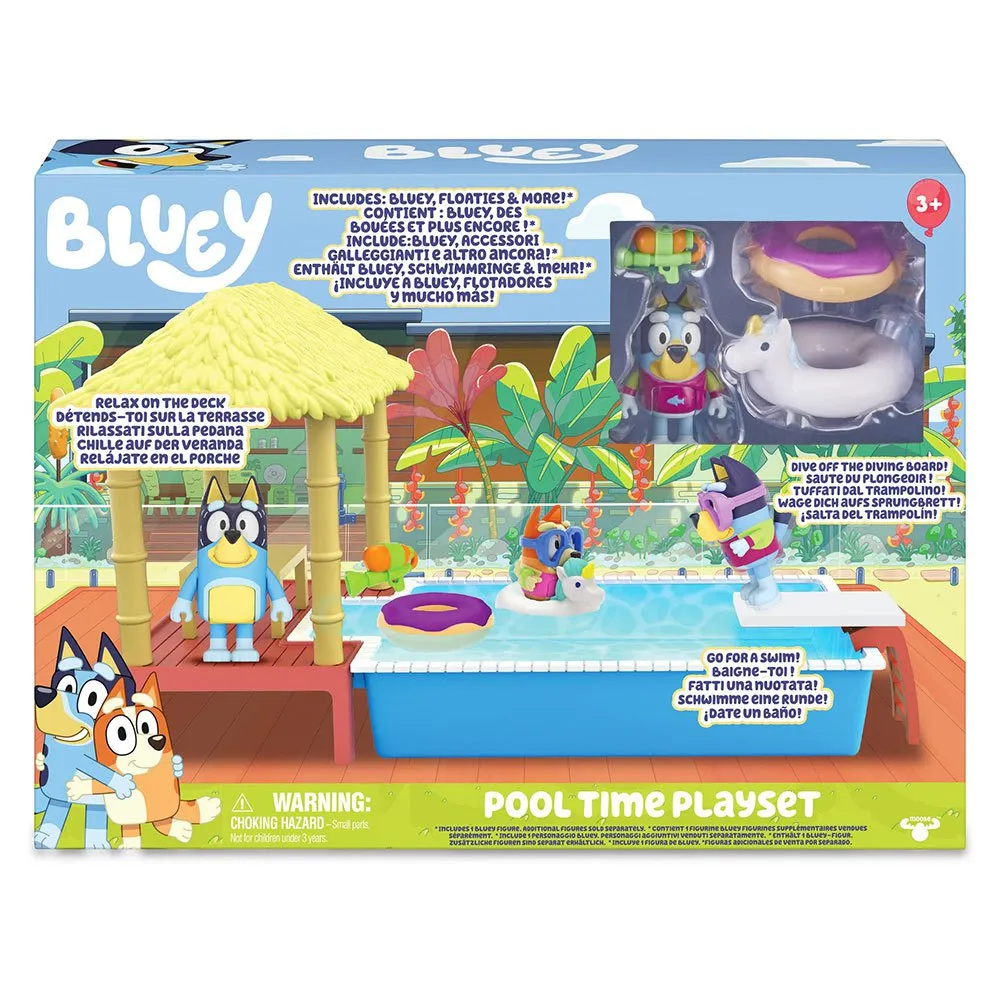 Bluey´s pool er det nye legesæt og er perfekt til børn, der vil fortsætte med at genskabe Blueys eventyr, deres yndlingsserie.