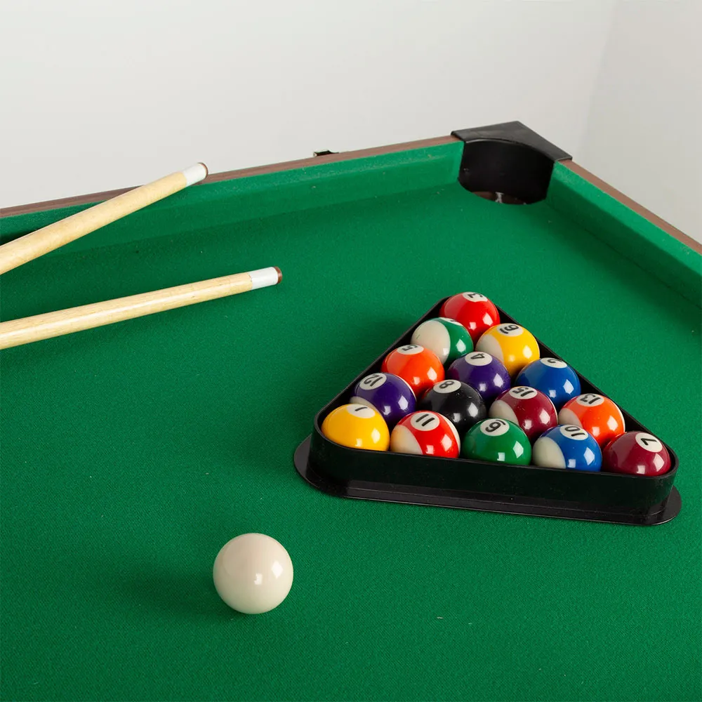 Det leveres med alt det nødvendige tilbehør, såsom aftagelige stålstænger med fodboldfigurer, to bolde, to bat og en puck til hockey, og 16 bolde, 2 køer, 1 placerings trekant og 1 kridt til billard.