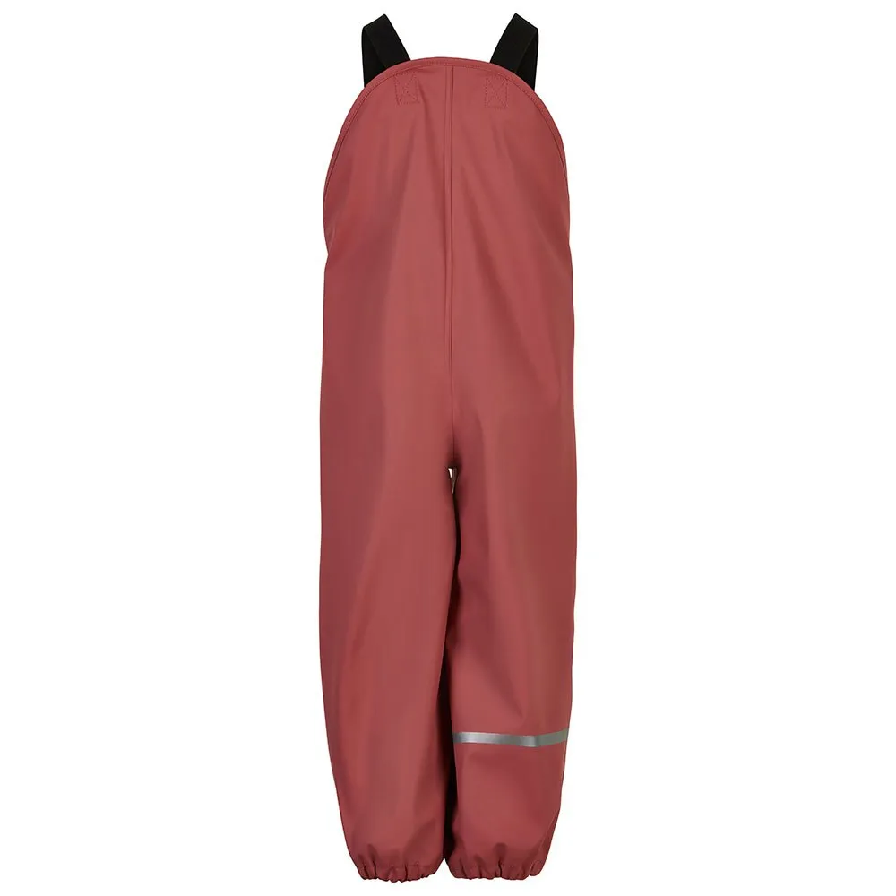 Holdbare PU regnbukser i genbrugt polyester med krave, justerbare seler og klikspænder.