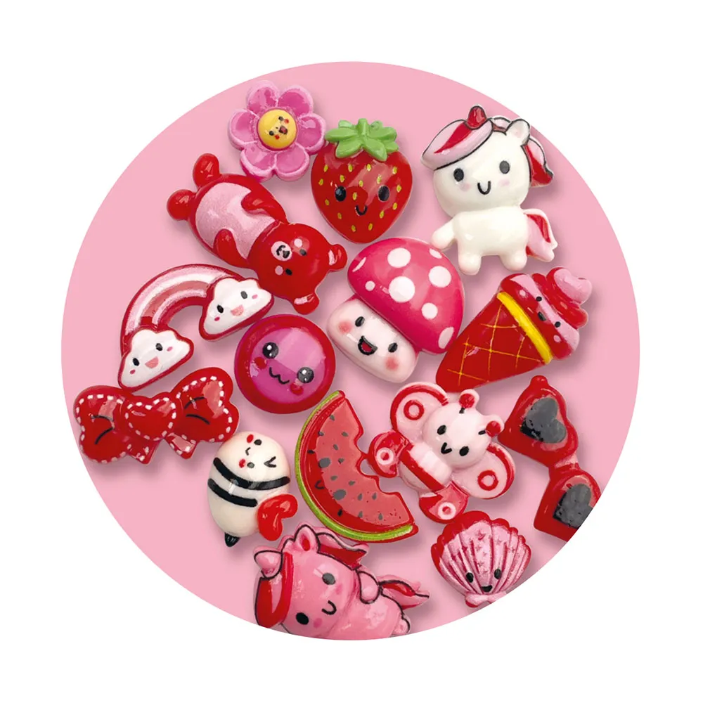 3 decoden bottles, 3 nozzles, 15 charms, 75 beads, 50 gems, 1 tweezer, 10 stickers, 4 hairpins and 2 hair clips.