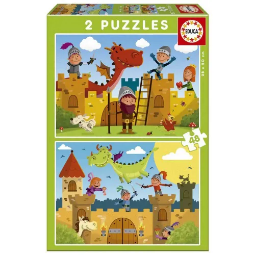 Dette to-puslespils sæt tilbyder enestående værdi og giver to forskellige scener, som børn kan udforske. Et puslespil skildrer en verden af ​​voldsomme drager, der spyr ild og svæver gennem himlen, mens det andet viser tapre gentlemen, der er klar til eventyr og ridderlige gerninger. Børn kan fordybe sig i disse fantastiske verdener, skabe deres egne fortællinger og begive sig ud på imaginære quests. De levende farver og detaljerede illustrationer forbedrer yderligere den engagerende oplevelse, fanger børns opmærksomhed og stimulerer deres kreativitet.