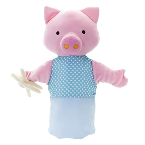 Men så kom ulven og blæste det lille hus omkuld med ét pust! Spil din egen historie med denne hånddukke af en af de tre små grise.
