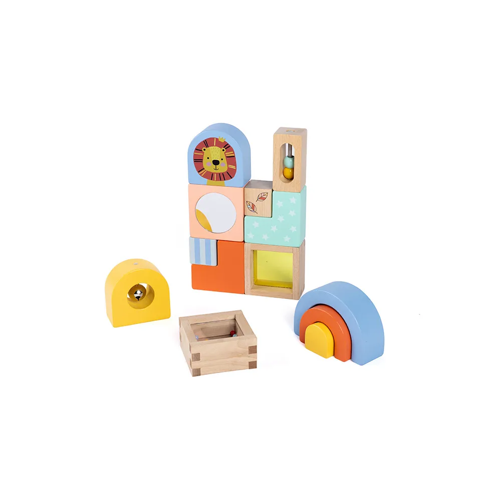 Med dette originale byggesæt vil de ikke kun øve deres evne til at bygge strukturer, men ved at gøre det vil de opdage forskellige teksturer, lyde og effekter, der vil stimulere alle deres sanser. Hver af de 13 klodser, der udgør dette spil, har sin egen unikke funktion og opfordrer dem til at opdage dens egenskaber. Fra forskellige materialer og teksturer til lyde og dele til at røre ved og lære af, tilbyder hvert stykke dem muligheden for at gøre en ny opdagelse.