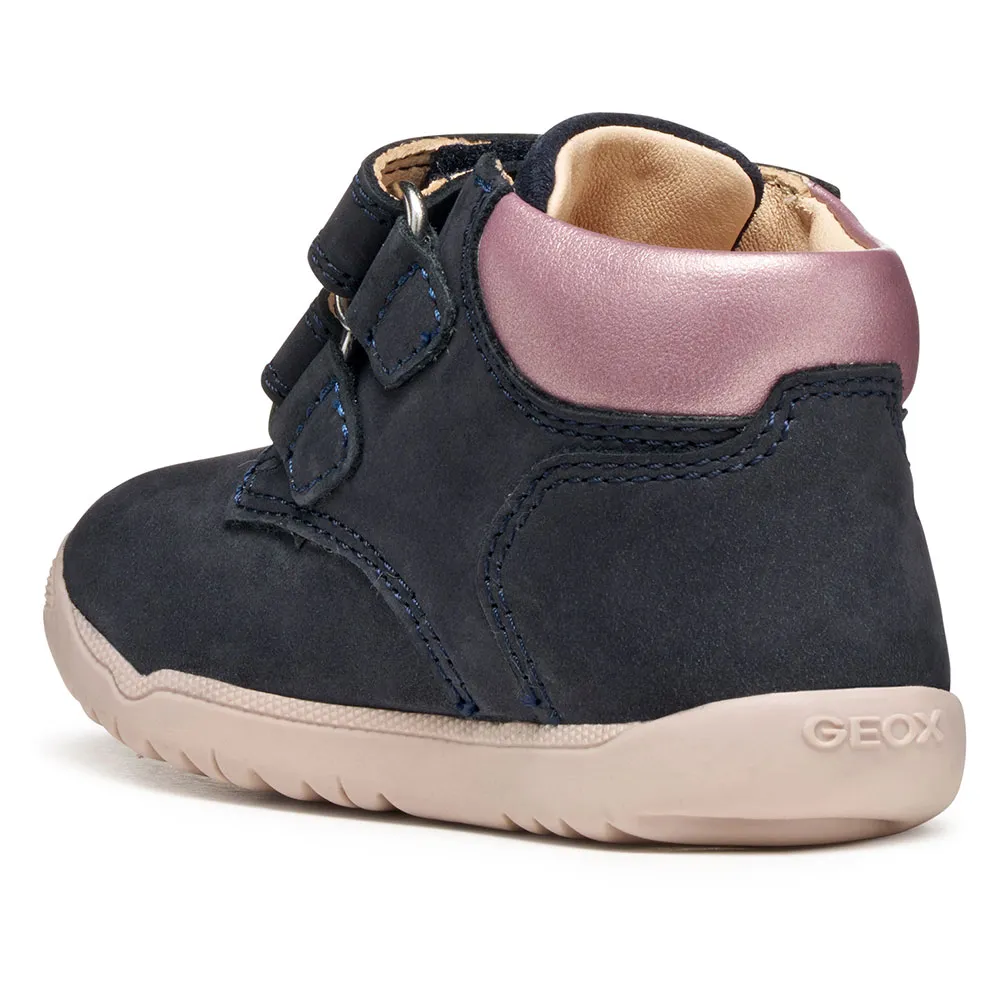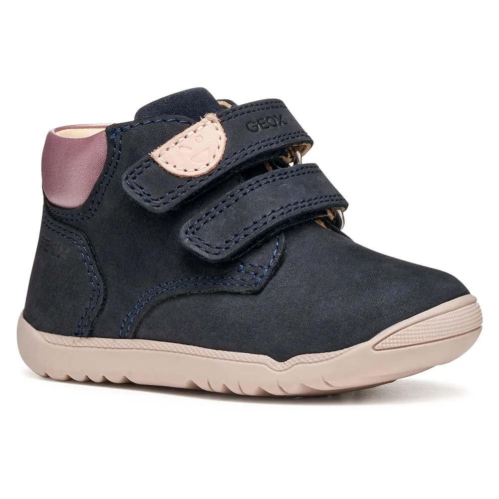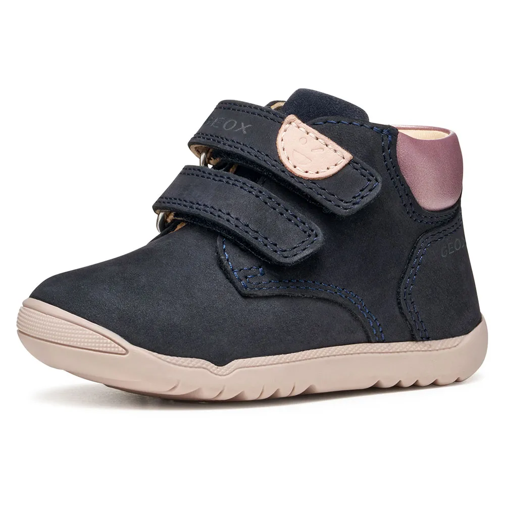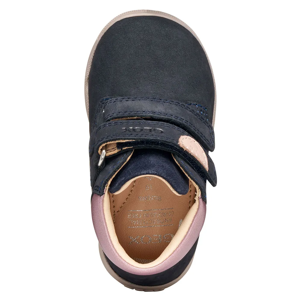 Perfekt til hendes første eventyr og let at smutte i og justere, Macchia er en piges første-skridts sko fremstillet af nubuck og ruskind.