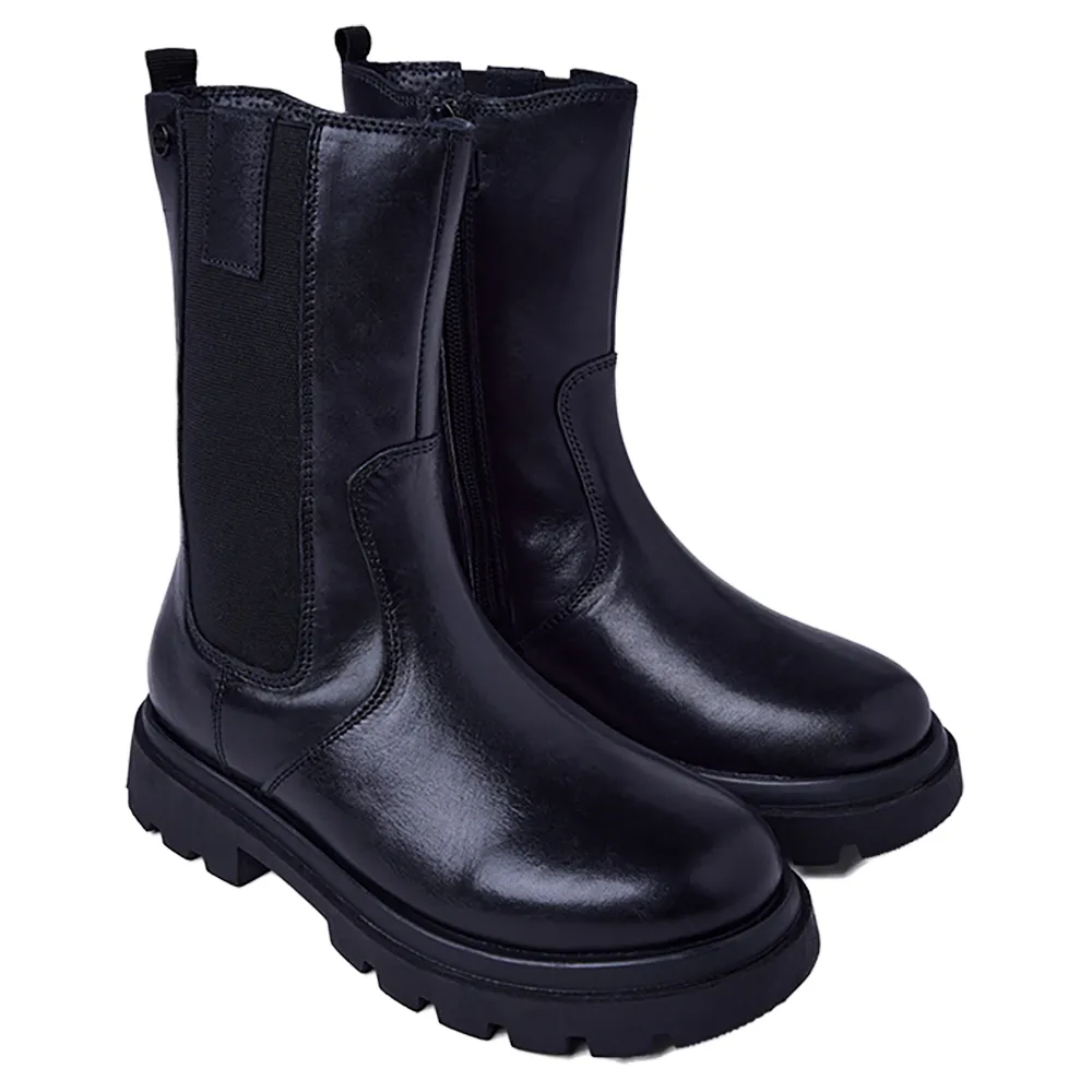 De har en polstret indersål, elastik på ydersiden og en lynlås på indersiden af skaftet.