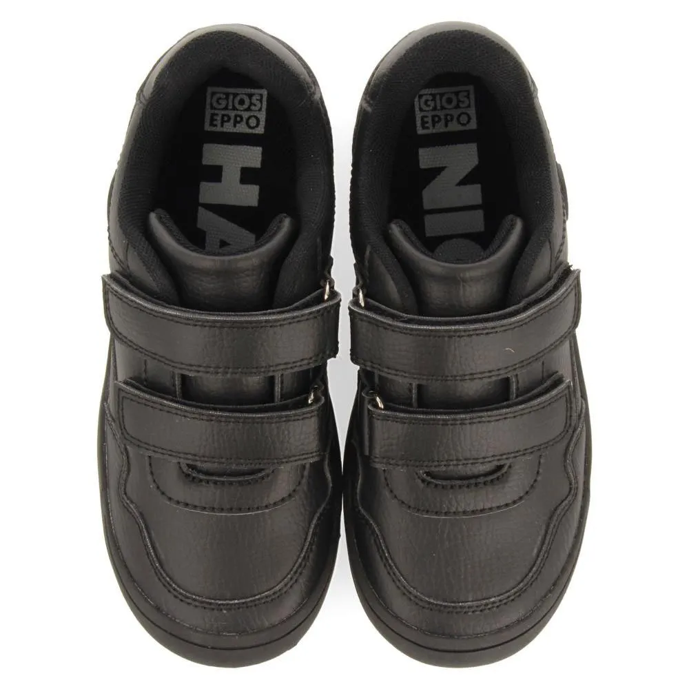 Sorte sko til skolen med justerbare lukninger.