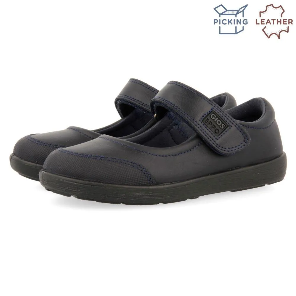 Ballerina-stil skolesko i marineblå.