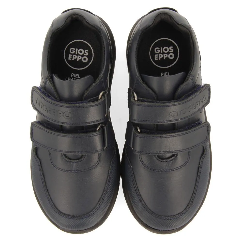Mørkeblå lædersneakers til skolebrug med justerbare lukninger.