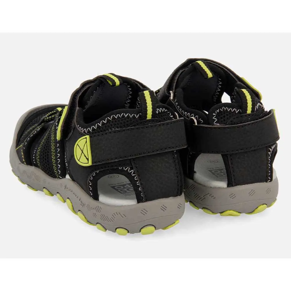 Gear op til eventyr med GIOSEPPO Mazatlan sandalerne, det ultimative sporty fodtøj til aktive børn. Designet til non-stop leg, har disse unisex klipklappere justerbare velcroremme for en sikker, tilpasset pasform, der fremmer uafhængighed. En robust, forstærket tåkappe beskytter små tæer mod stød, mens det bløde for og den polstrede fodseng leverer komfort hele dagen. Med en slidstærk ydersål med højt greb for overlegen stabilitet på enhver overflade, er de den perfekte, sikre ledsager til enhver solrig dag, fra legepladsen til stranden