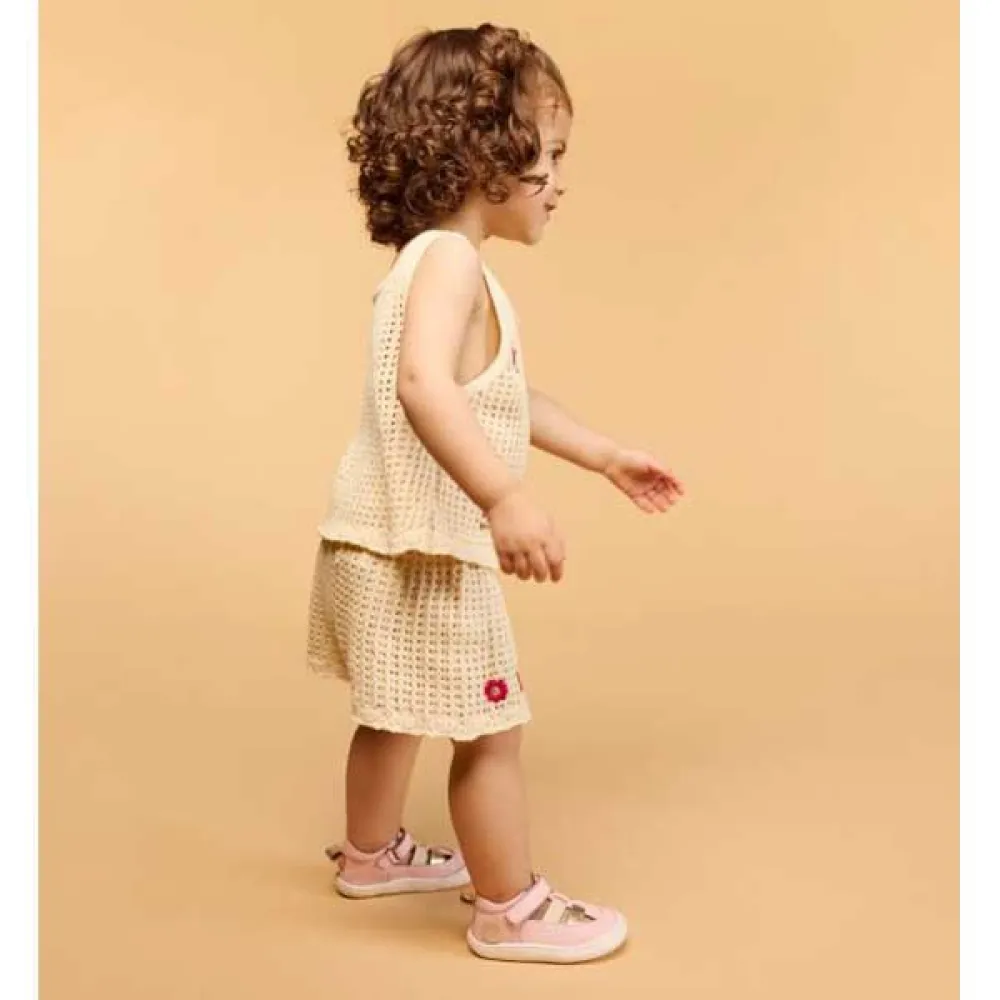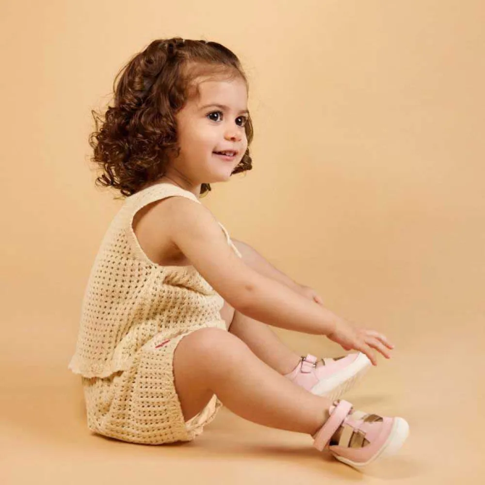 En ny fodtøjslinje, der vil genopfinde oplevelsen af deres første skridt. Sandaler med justerbare lukninger. De har en meget polstret latex indersål og fleksibel sål. Foret og indersålen er lavet af åndbart materiale.