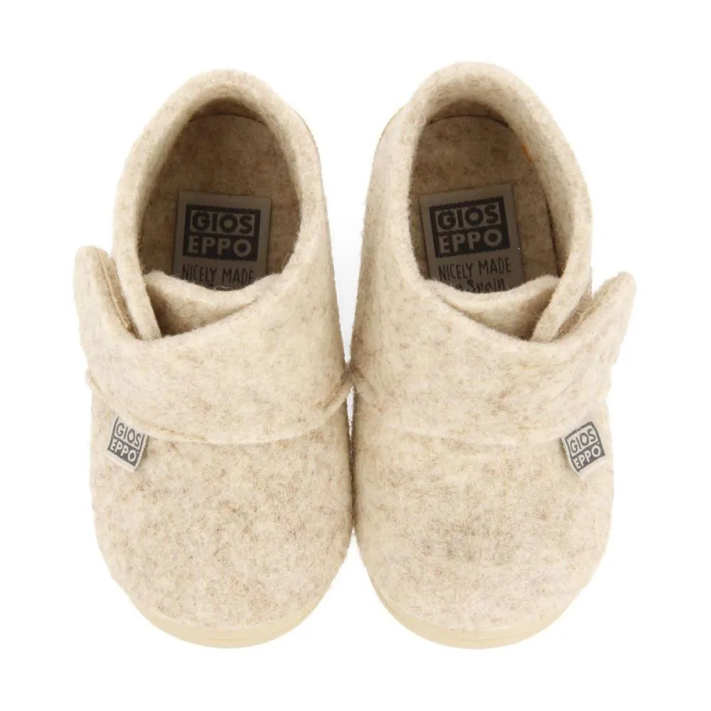 Beige hjemmesko i støvlestil med justerbare lukninger.