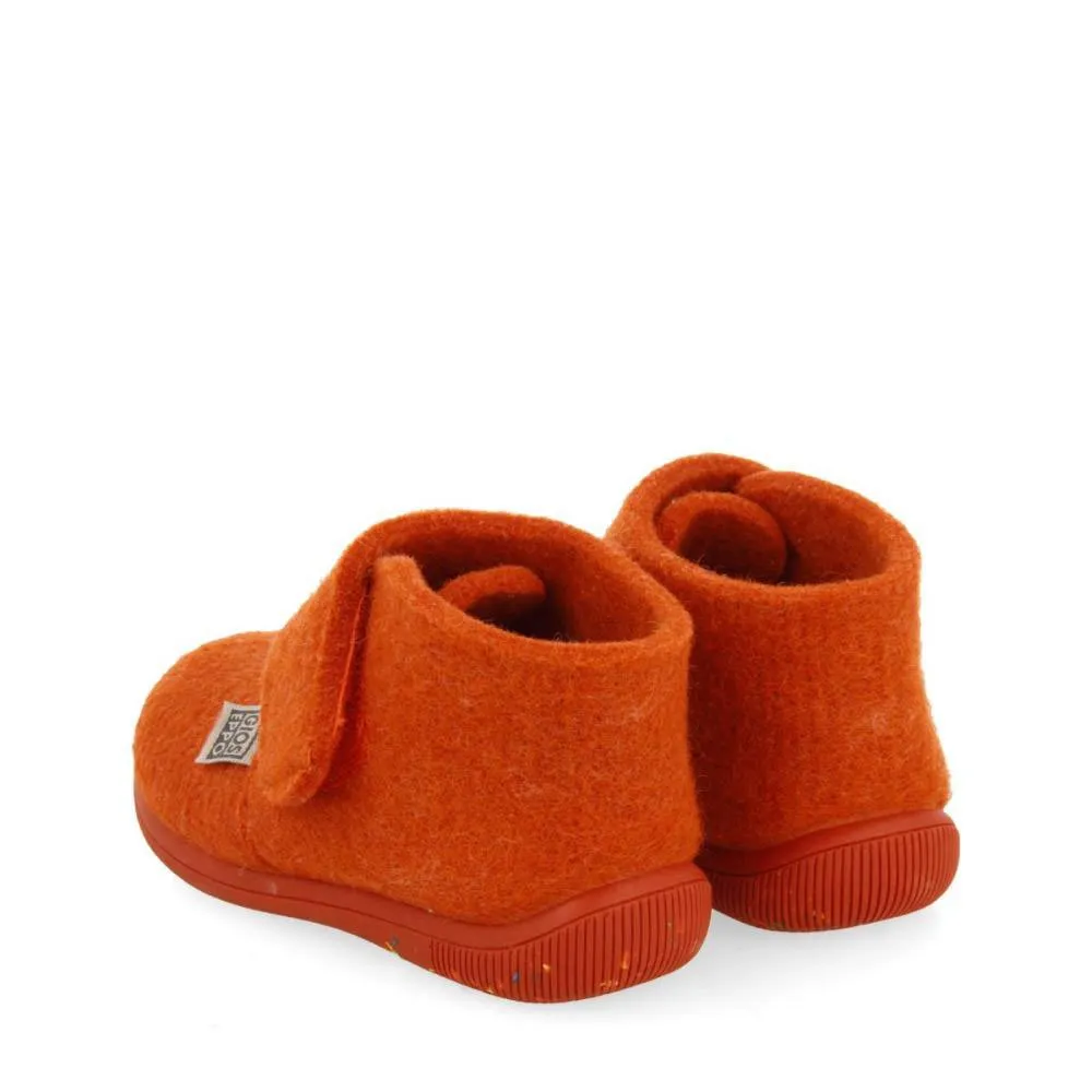 Orange hjemmesko i støvlestil med justerbare lukninger.