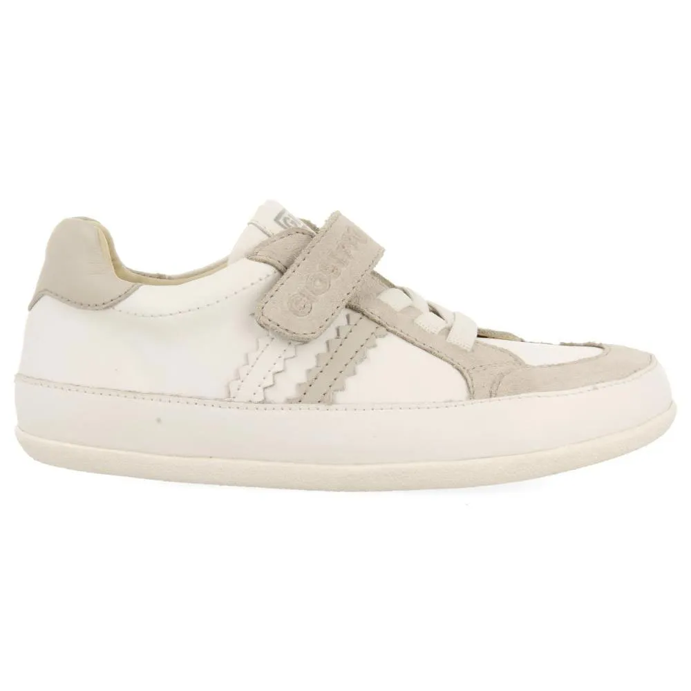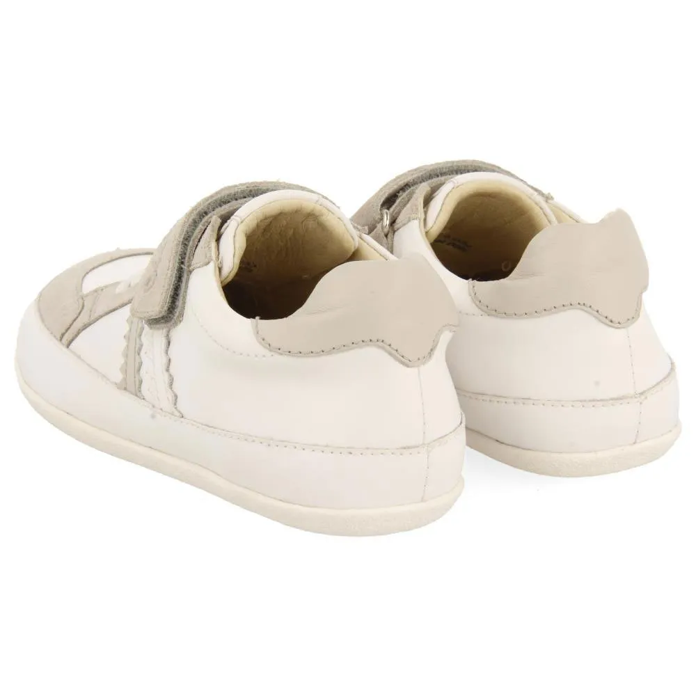 Hvide sneakers med justerbare lukninger uden anatomiske elementer, der kan hindre den optimale udvikling af foden.