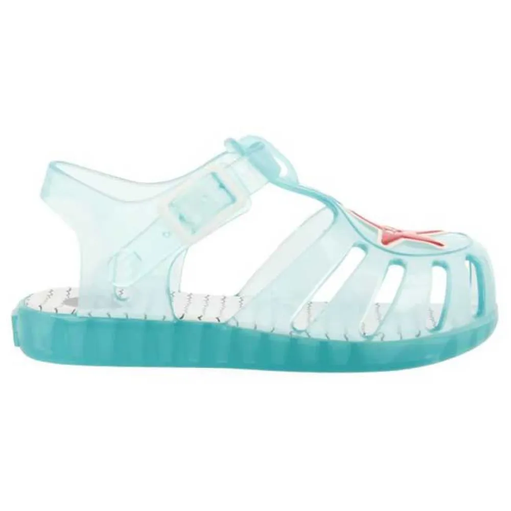 Ducks in the water! Turquoise jelly sko med en stjerneplade på overdelen.