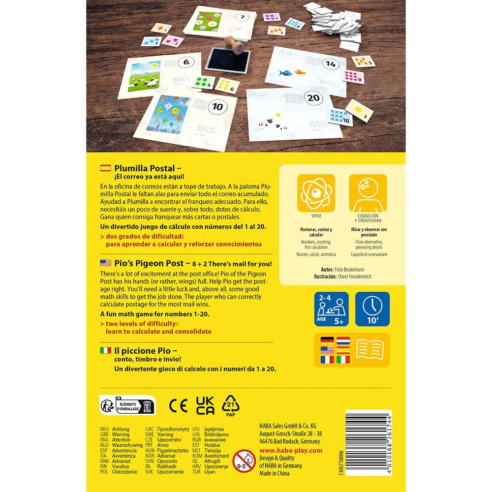 Et matematikspil med to sværhedsgrader, der tæller fra 1 til 20, hvor du skal stemple breve eller postkort med mindst to frimærker efter eget valg, der svarer til portoens værdi.