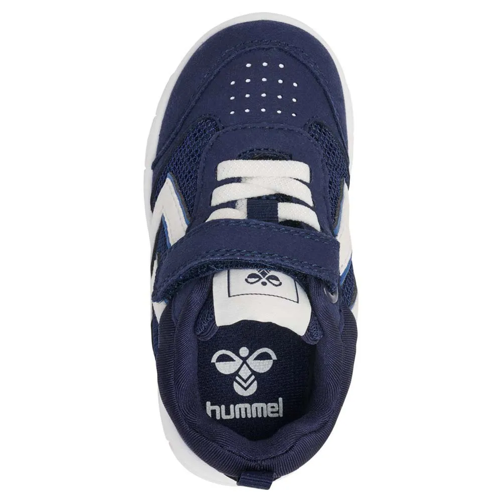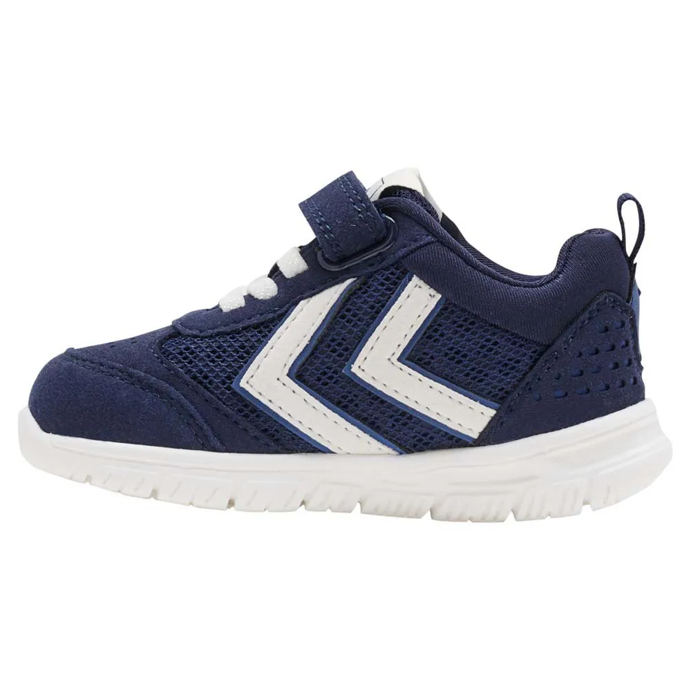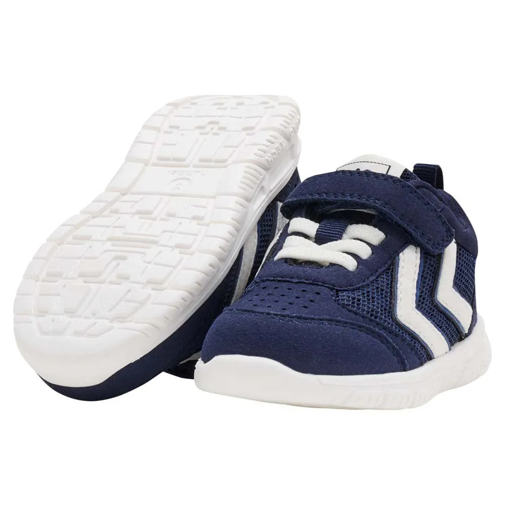 Disse hummel® sneakers har en let overdel i en blanding af striktekstil og ruskind, mens ydersålen også giver letvægtsstøtte til de første skridt.