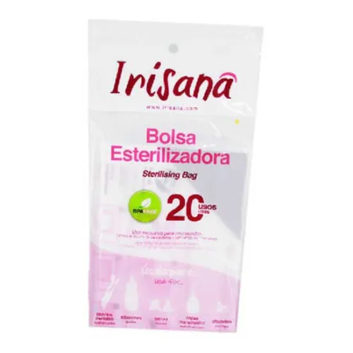 STÉRILISATIONSPOSE Hvad er IRISANA stériliseringspose? IRISANA stériliseringspose er en pose, der udelukkende er beregnet til mikrobølgeovne, og som du kan bruge til at stérilisere tandbørster, flasker, brystvorter, menstruationskopper, sutteflasker osv.