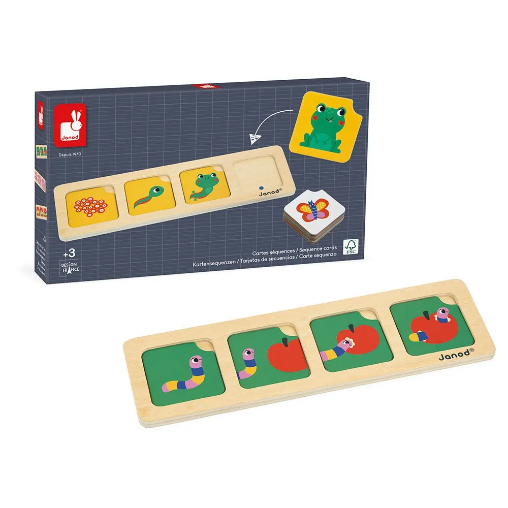 Hvordan dannes en sommerfugl? Hvordan bliver et frø til en blomst? Led dit barn i opdagelsen af naturen ved hjælp af sekvenskort.