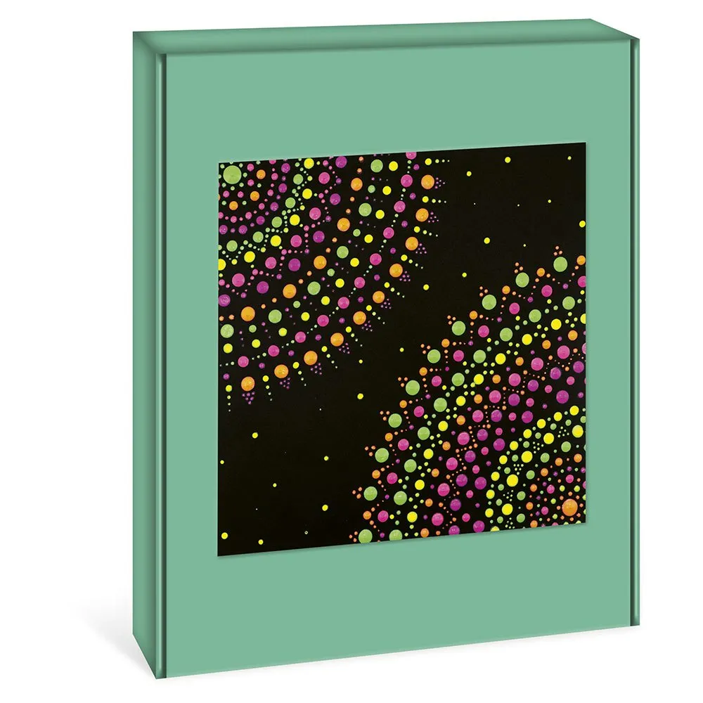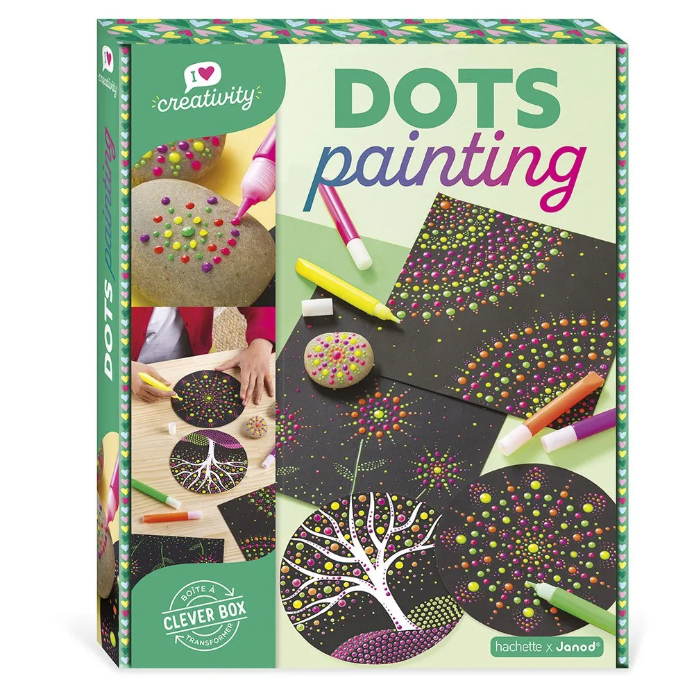 Giv sorte firkanter liv og farve takket være pointillisme-trenden! Dette etui giver dig mulighed for at dekorere 4 sorte firkanter og en kampesten med 3D maling prikker i forskellige størrelser.