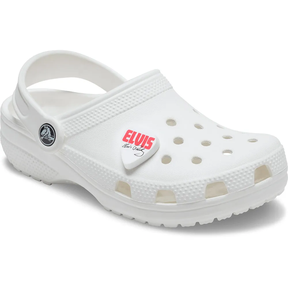 Tilføj personlighed til dine sko med denne Elvis Presley Guitar Pick Jibbitz™-charm. Det er den perfekte tilføjelse til dine yndlingspar clogs, sandaler og mere. Dette eksklusive sæt indeholder tre særskilte og omhyggeligt detaljerede designs, der fanger essensen af Elvis. Hver af disse dekorative pins fungerer som et miniaturekunstværk, der hylder forskellige facetter af hans ikoniske arv. Denne pakke er din billet til at personalisere dit fodtøj og gøre dit par Crocs umiskendeligt dit eget.