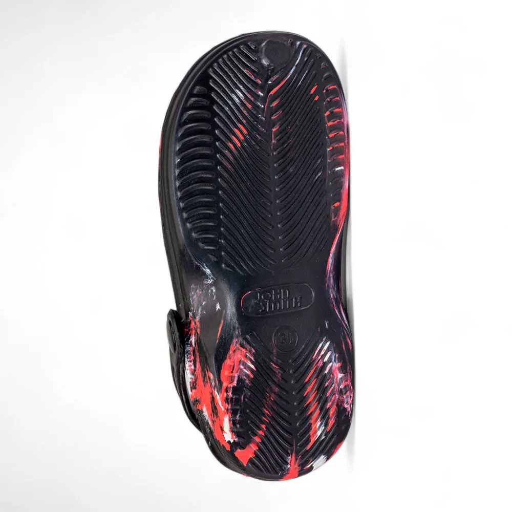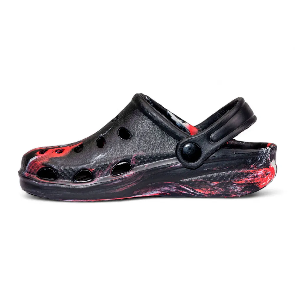 Injiceret Eva-træsko, der skiller sig ud for den beskyttelse, den tilbyder foden, da det er en sko med huller til åndbarhed og dræning af vand, samtidig med at den dækker og beskytter hele vristen og tæerne.