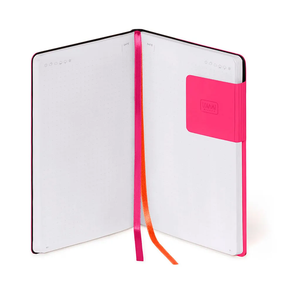 Bliv organiseret og vær kreativ med Legami My Notebook - Dotted - Raspberry Cover - Medium. Med nummererede sider, et indeks, verdenskort og masser af nyttige layouts har denne notesbog alt, hvad du behøver for at starte nye projekter og planlægge dine dage. Papiret er FSC-certificeret (FSC-C154586) og kommer fra veldrevne skove, FSC-certificerede skove og andre kontrollerede kilder.