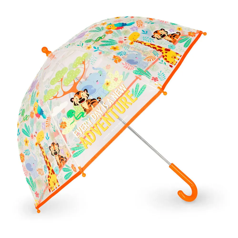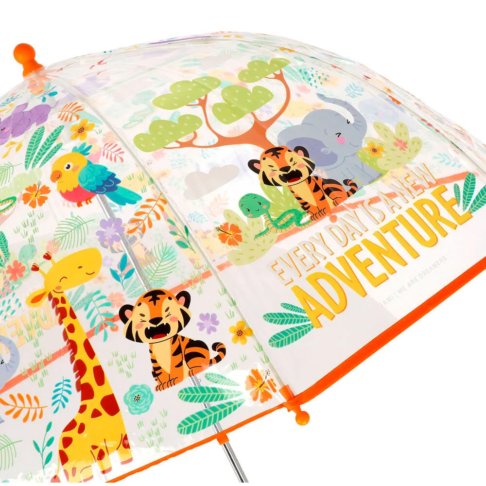 Hvis vejret er dårligt, hvorfor så ikke gøre det bedre? Se bare på verden gennem Legamis Kids´ Umbrella - Dancin´ in the Rain - Jungle - transparent og farverig, den forvandler enhver regnvejrsdag til den perfekte måde at sprede glæde overalt.