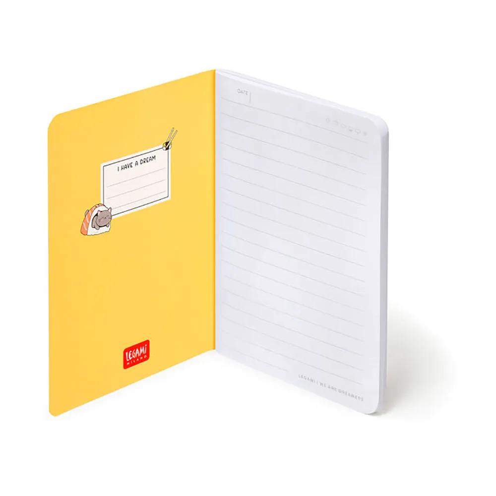 Produktbeskrivelse af Legami Lined Sushi Cat notesbog