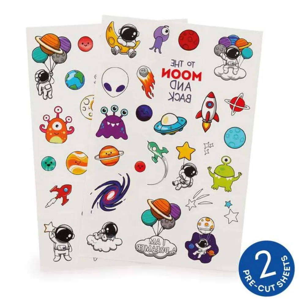 Disse højkvalitets midlertidige tatoveringer er designet med din lille opdagelsesrejsendes velvære i tankerne og er dermatologisk testet og ikke-giftige, hvilket sikrer, at de er fuldstændig sikre for huden. Påføringen er lige så simpel som en nedtælling til opsendelse. Vælg blot dit yndlingsdesign, placer det forsigtigt på ren, tør hud, dup det med en våd klud eller svamp i et par sekunder, og træk forsigtigt papiret tilbage for at afsløre dit fantastiske stykke kosmiske kropskunst. Når missionen er slut, og det er tid til at vende tilbage til Jorden, er fjernelsen lige så ubesværet, hvilket gør dem til et forældrevenligt valg for sjov uden rod.