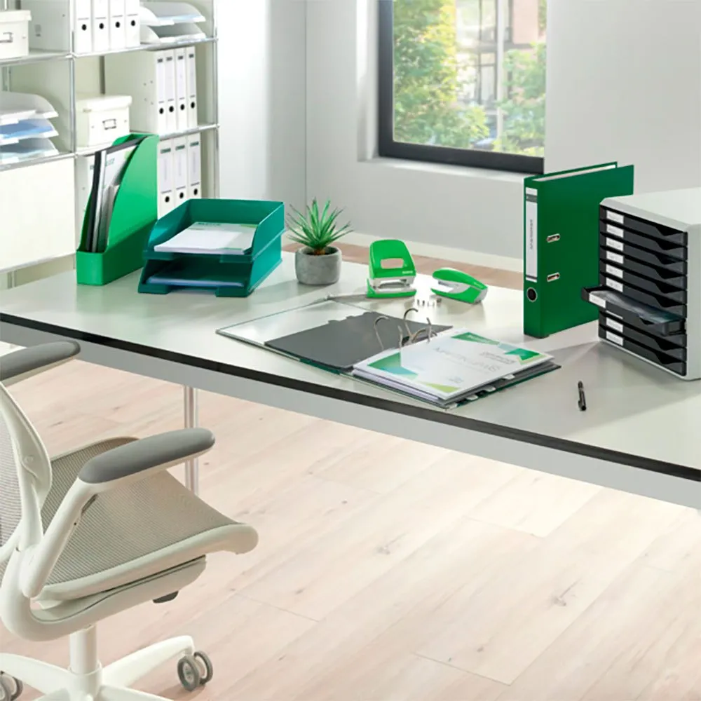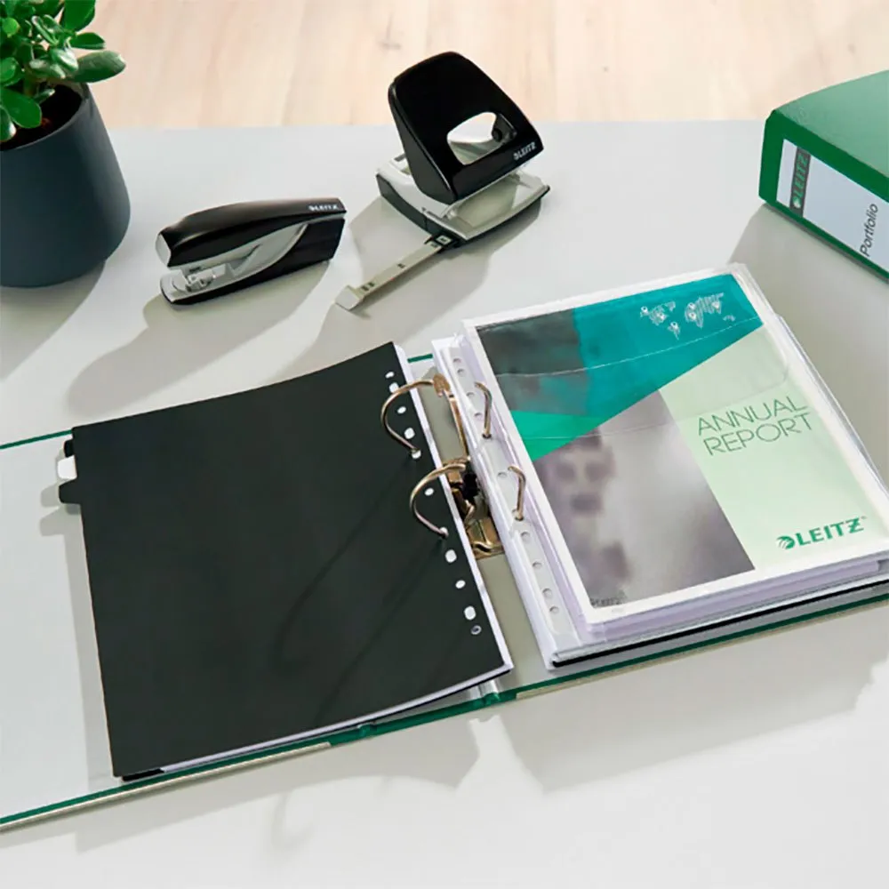 LEITZ 180° A4 ringbindet kan prale af et slankt og professionelt design, der komplementerer ethvert arbejdsområde. Dens tidløse æstetik og holdbare konstruktion gør det til et ideelt valg til kontoret, klasseværelset eller hjemmet.