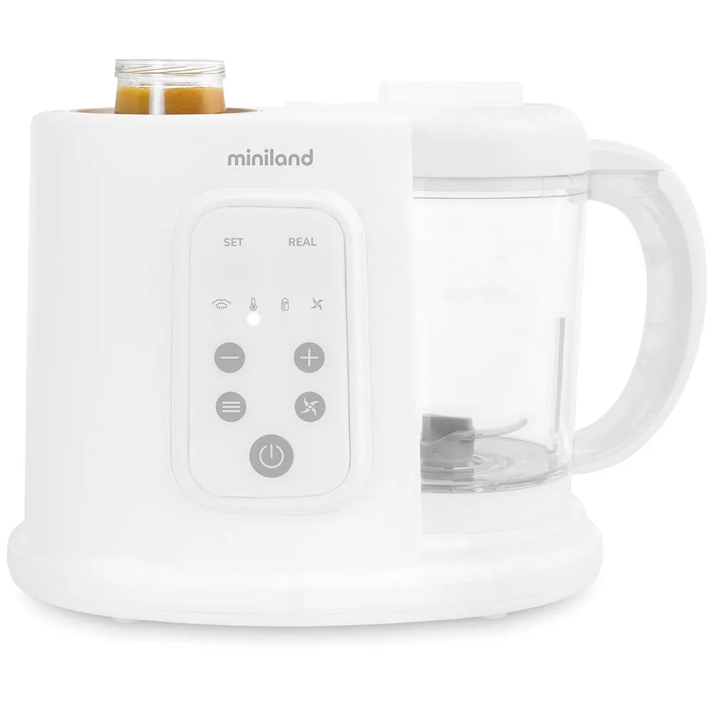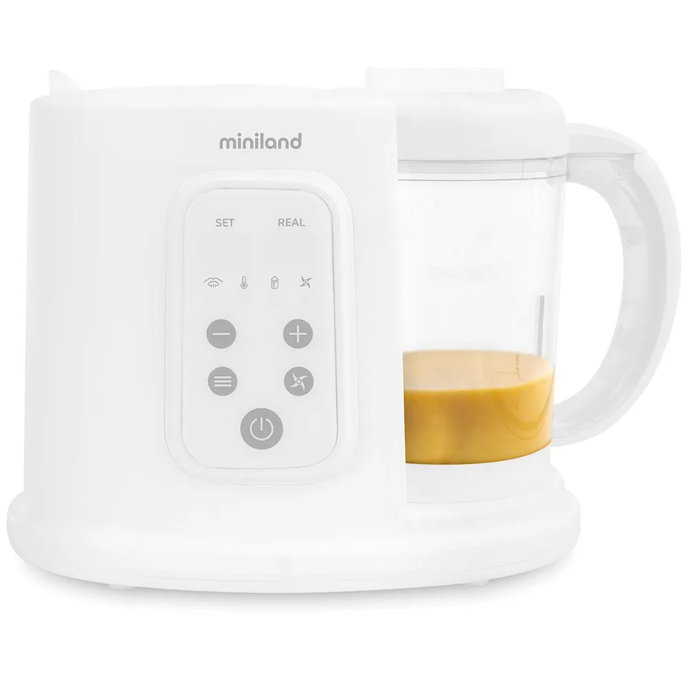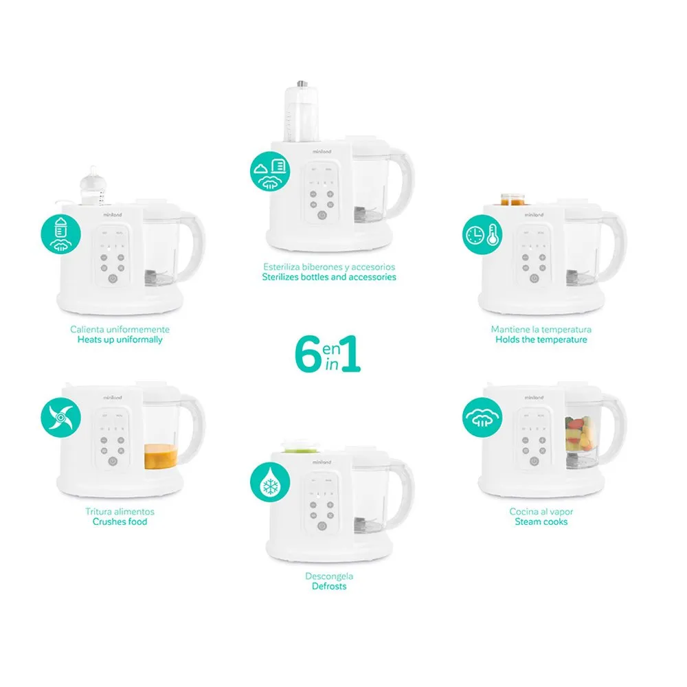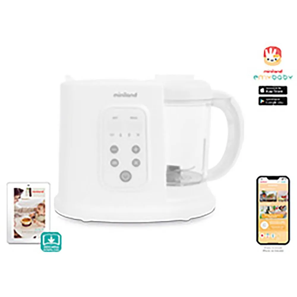 Gør dit barns måltider enklere med MINILAND Chefy 7, den ultimative 6-i-1 køkkenrobot. Denne alsidige enhed damper og purerer mad til den perfekte konsistens, varmer og optør flasker, samtidig med at den skånsomt bevarer modermælkens næringsstoffer, og steriliserer med naturlig damp. Ideel til både glatte puréer og Baby Led Weaning, gør Chefy 7 det ubesværet at lave hjemmelavet babymad. Dens digitale display, det rengøringsvenlige design og adgang til opskrifter via emybaby® appen gør den til den perfekte partner på hele dit barns madrejse