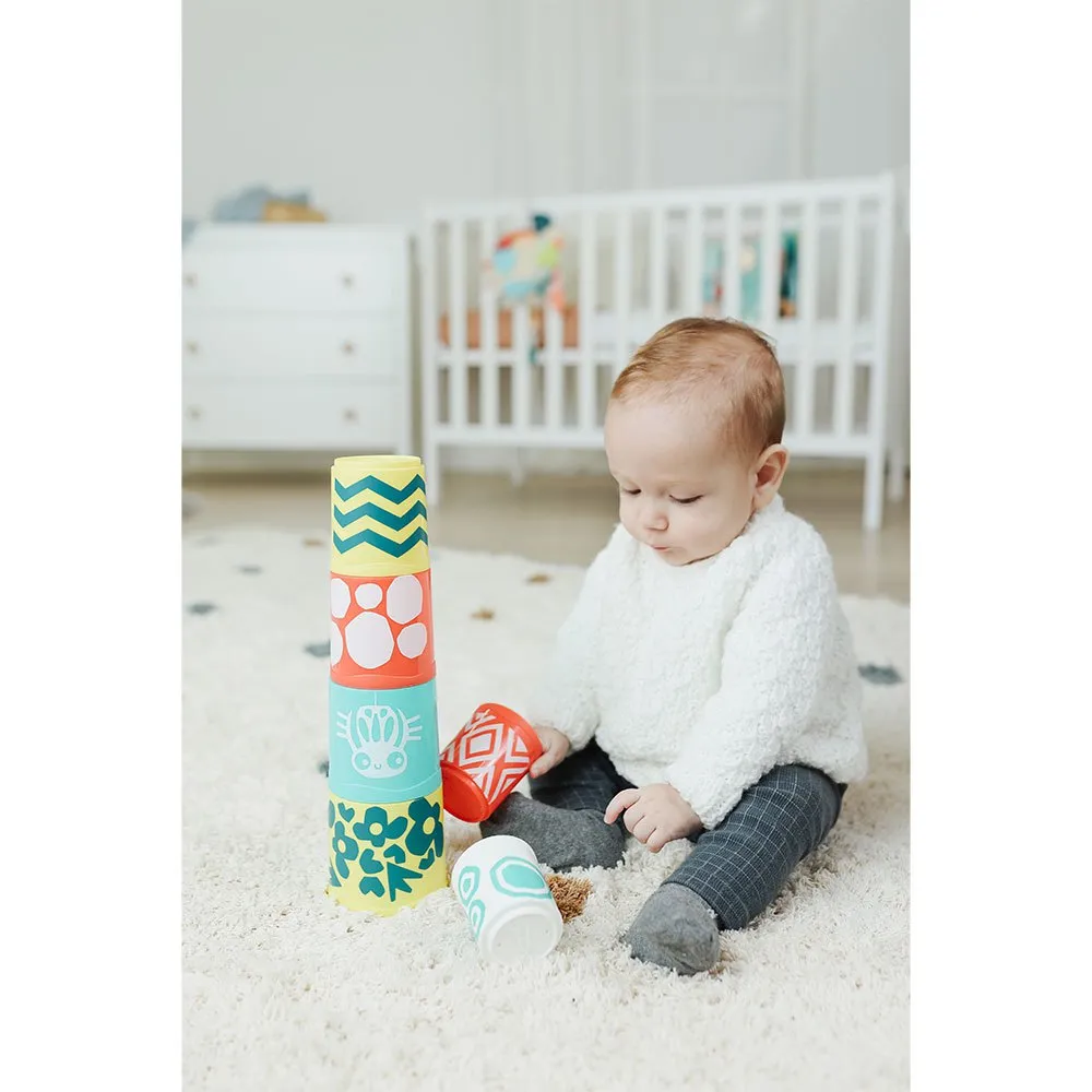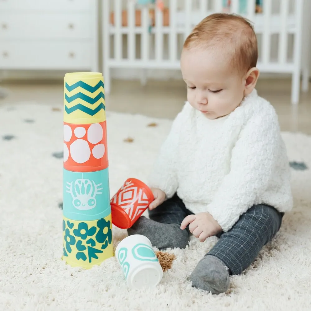 Småbørn elsker at stable og derefter vælte, og derfor præsenterer vi inden for Feel to Learn-kollektionen et sæt med 6 stablebare terninger lavet af miljøvenlige materialer, hvilket reducerer miljøpåvirkningen.