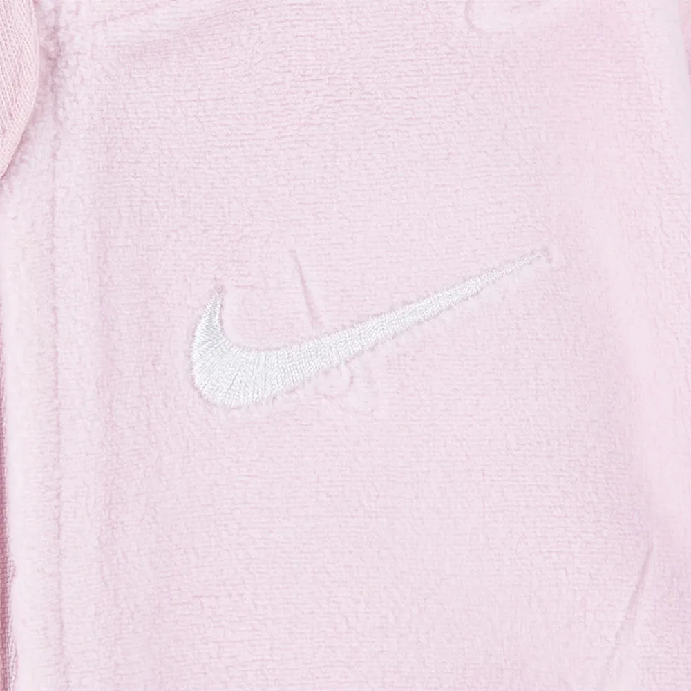 Svøb din lille mester i ultimativ komfort med NIKE KIDS Essentials sovedragten. Fremstillet af luksuriøst blød, præget velour er denne heldragt skånsom mod sart hud og perfekt til hyggelige lure. Det forældrevenlige design udmærker sig med en lynlås i fuld længde og en sikkerhedsflap for ubesværede, klemme-fri bleskift. Smarte ombukkelige vanter holder små hænder varme og forhindrer ridser. Færdiggjort med en tætsiddende pasform og det ikoniske broderede Swoosh, er den den perfekte blanding af stil og komfort til din baby fra lur til leg